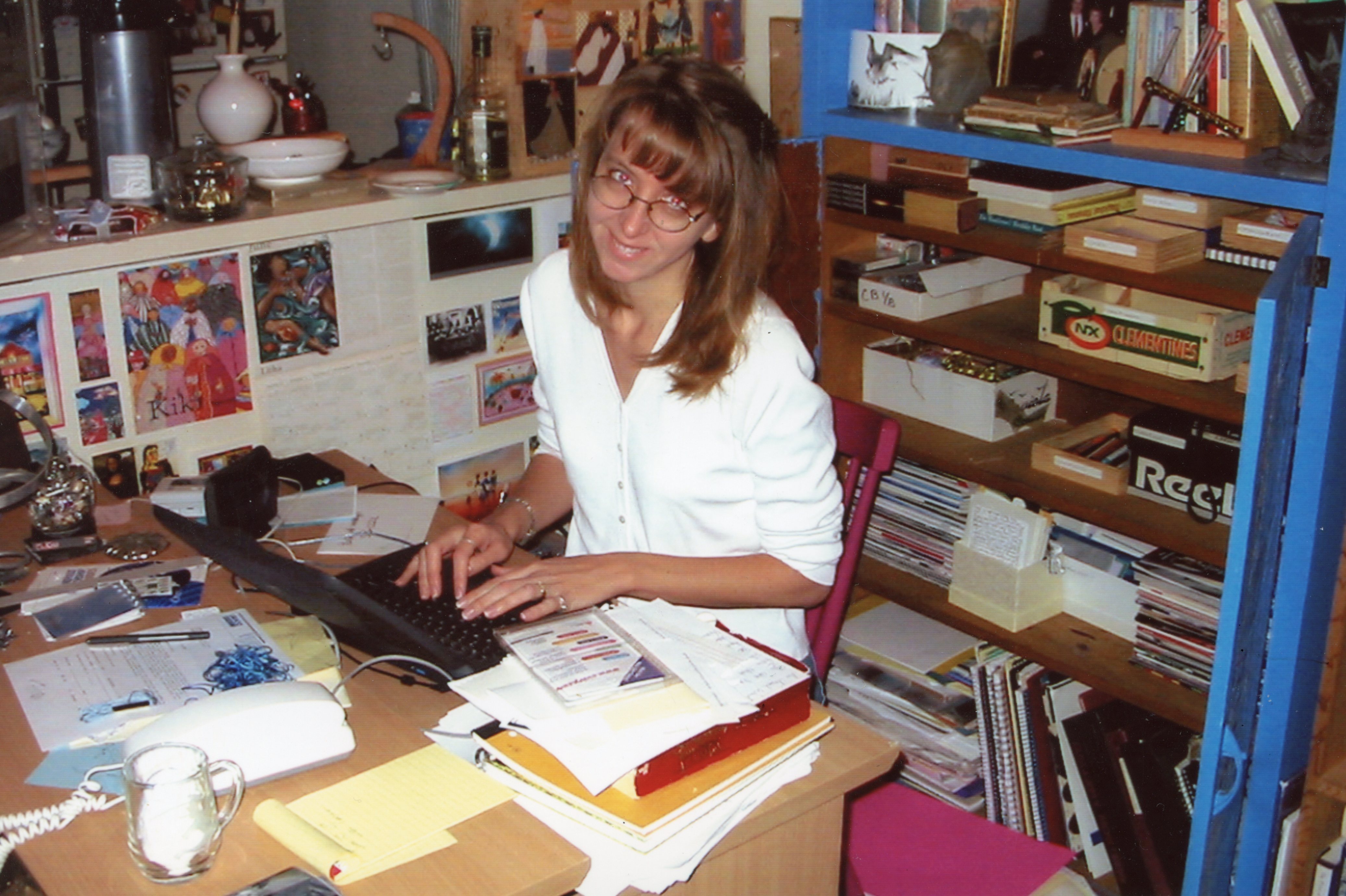 Okay, maybe in that picture I’m just typing an email. It’s hard to say for sure. But my husband took that picture around the time I started my novel–in the year 2000 or 2001. And that’s the laptop I started writing it on (RIP first laptop) and the desk I was sitting at. I certainly harbored dreams of publication, but I tried not to examine those dreams too closely lest they fall apart under scrutiny.